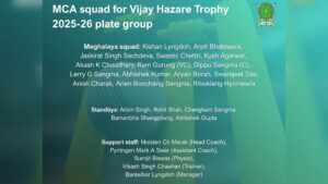 Meghalaya names its squad for Vijay Hazare one day tournament